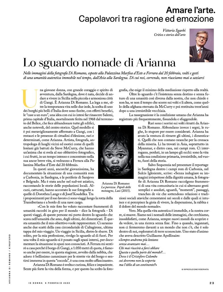 Arianna Di Romano was born in Sardinia and lives in the medieval village of Gangi in Sicily at 1,000 meters above sea level, in a 19th century house she recovered from life. Its origins are a solid intertwining between the two islands, Lands of fire, Water and wind. Arianna moves around the world in search of stories to tell, faces to portray, looks to capture, landscapes to live, scenes of everyday life. Cambodia, Vietnam, Thailand, Laos, Malaysia, Japan, Serbia, Bosnia, Poland, Romania and many other countries. Defined by the media as the new Dorothea Lange of photography, Arianna experiences her work as a first of all spiritual experience, a story from soul to soul. His unmistakable style expresses drama, intensity but never a disadvantage of the composition and the subject. Passionate about life and experience, Arianna is interested in restoration, is an airplane pilot and cultivates a passion for herbs and aromas.